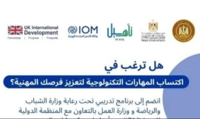 أعلنت وزارة العمل اليوم ، يوم الأربعاء ، افتتاح الشباب للاستفادة من برنامج تدريبي مجاني ، تحت رعاية وزارات السن والرياضة والرياضة والعمالة ، المنظمة الدولية للهجرة (IOM) إعادة التأهيل وتطوير مهارات التسويق الرقمي ، وإنقاذ الأساسيات في مجال المحتوى وتصميم حملات الإعلان من خلال منصات التسويق الرقمي ، والذكاء الفني. في الثقافة الرقمية لتعلم أساسيات استخدام الكمبيوتر والإنترنت بأمان وكفاءة.