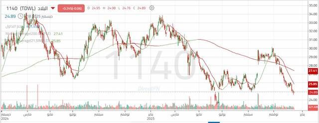 ومن أجل العودة للإيجابية على المدى القصير لا بد من الثبات فوق دعم 24.90 ريال بشمعتين لا تفصلهما شمعة عاكسة، مع زيادة أحجام التداول على الإطار الزمني اليومي. وهذا يمهد الطريق للهدف 25.50 ريال، وإذا تمكن السعر من الصمود فوق هذا المستوى، فسيكون هذا هو الهدف التالي 26.00 ريال سعودي.