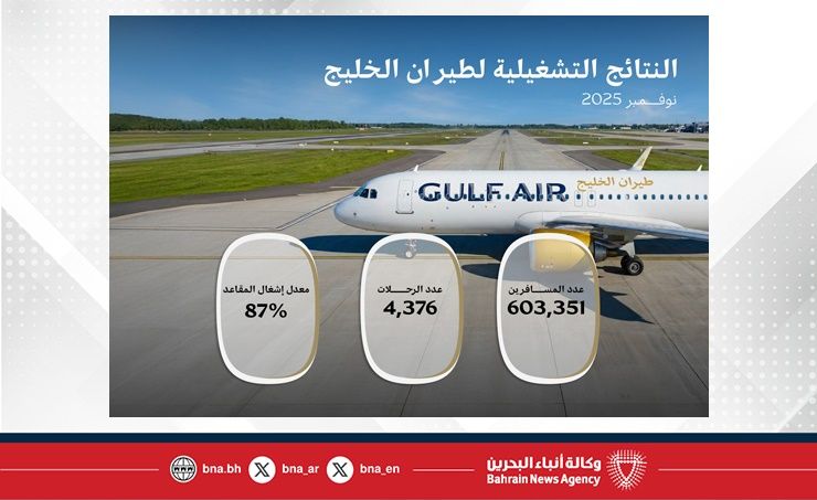 المنامة في 31 ديسمبر/ بنا / سجلت طيران الخليج، الناقلة الوطنية لمملكة البحرين، أداءً تشغيليًا قويًا في نوفمبر 2025، مدعومًا بالطلب الكبير على السفر عبر شبكة وجهاتها المتنامية.