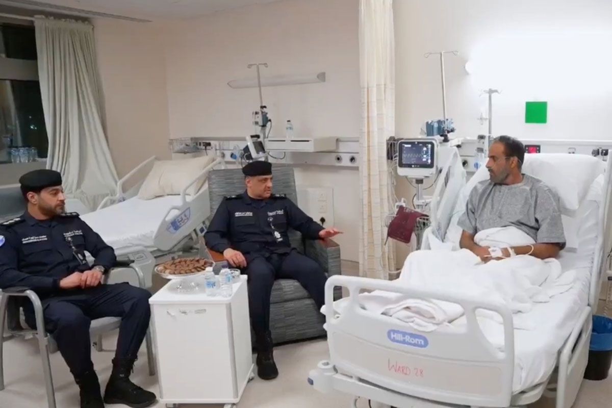 وقالت وزارة الداخلية في بيانها الصحفي اليوم الخميس، إن اللواء الوهيب نقل تحيات وتقدير النائب الأول لرئيس مجلس الوزراء وزير الداخلية الشيخ فهد يوسف سعود الصباح خلال الزيارة، مشيدا بتضحياته وجهوده الوطنية المخلصة، معربا عن تمنياته له بالشفاء العاجل.