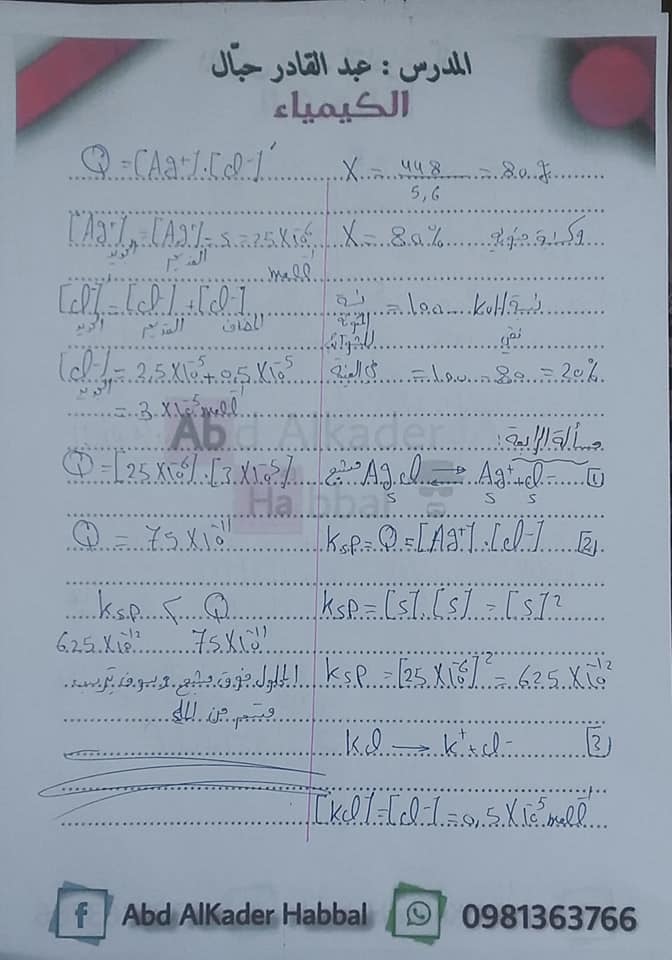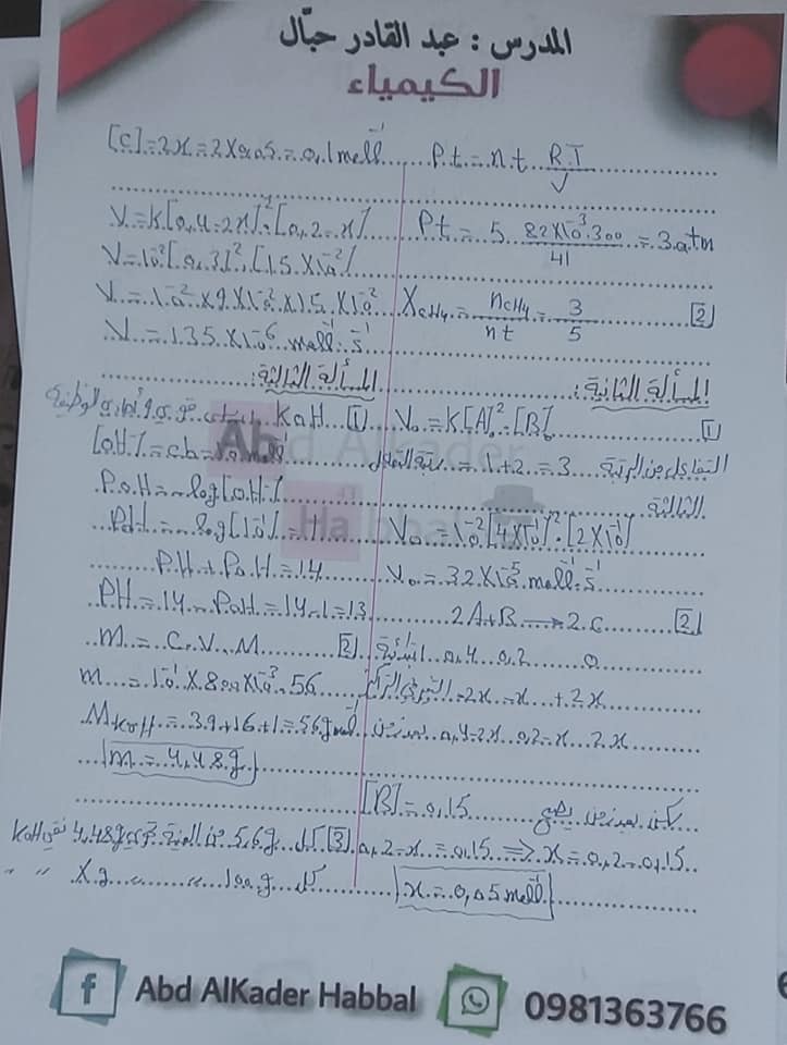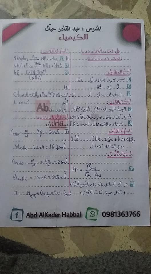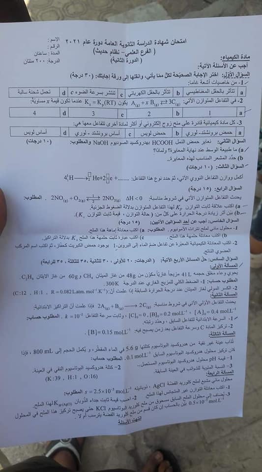 حلول لامتحان البكالوريوس السوري الثاني في الكيمياء عام 2021: